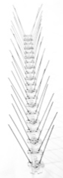 Caja Avenet de 30 m de 60 Bases antipalomas. Cada base de PC distribuye 40 púas de 5 cm de ancho sobre una longitud de 50 cm.